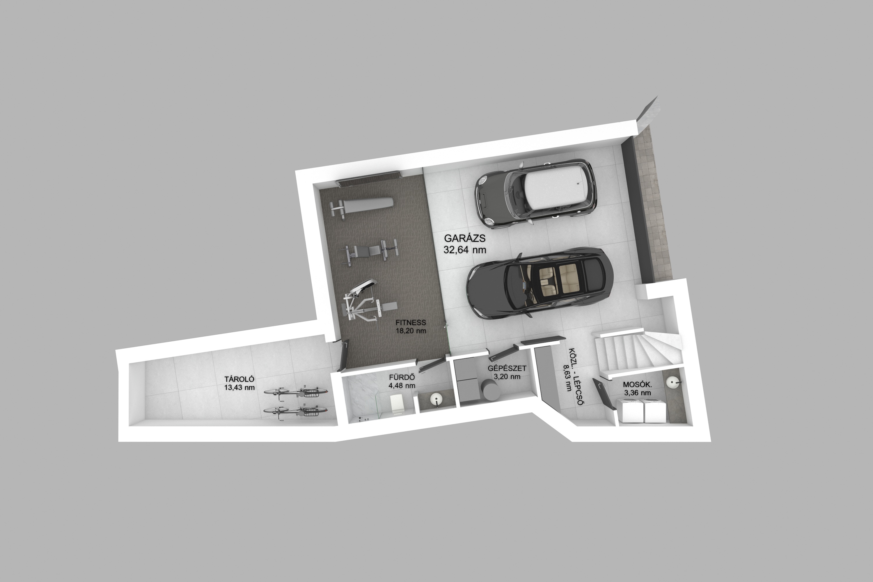Tágas, dupla garázsban elektromos autónak kiépített töltőhálózat.